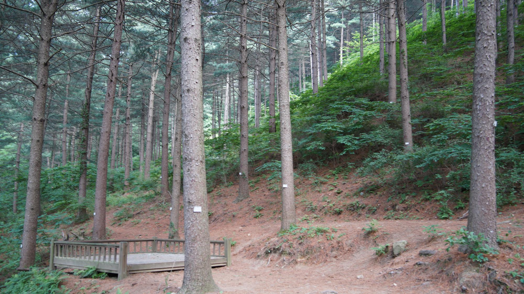 들머리에 위치한 잣나무 숲.